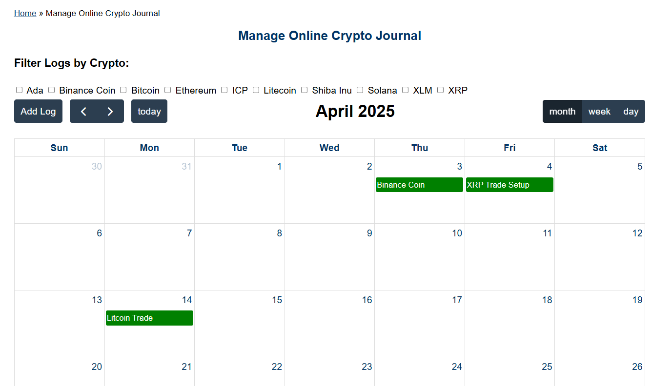 Figure: Example showing calendar management on online crypto trading journal entries.